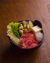 ある日の献立鳥取和牛すき焼き・境港産刺身盛・季節の天ぷら・大山そば・酢の物・先付け